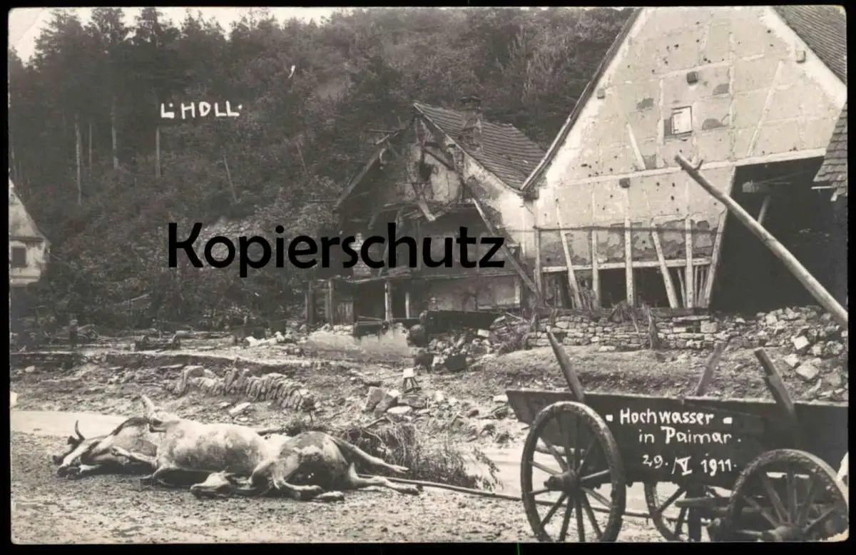 ALTE POSTKARTE HOCHWASSER IN PAIMAR GRÜNSFELD ÜBERSCHWEMMUNG 29.05.1911 Flut Flood inondation Kuh vache cow cpa postcard