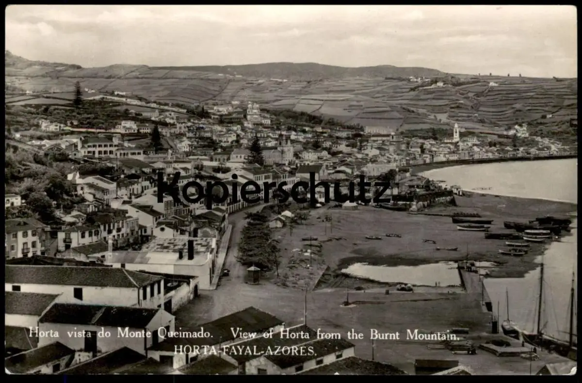 ALTE POSTKARTE HORTA VISTA DO MONTE QUEIMANDO BURNT MOUNTAIN Ebbe ebb Azoren Acores Acoren Portugal Portuguesa postcard