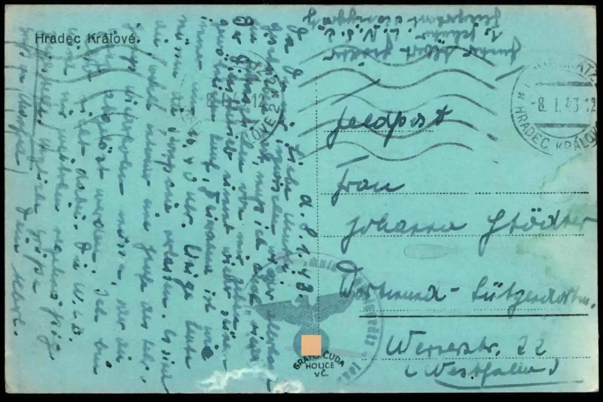ALTE POSTKARTE HRADEC KRALOVE FELDPOST 1943 STEMPEL FLIEGERHORST VERFASSER BESCHREIBT DIENSTBETRIEB Königgrätz postcard