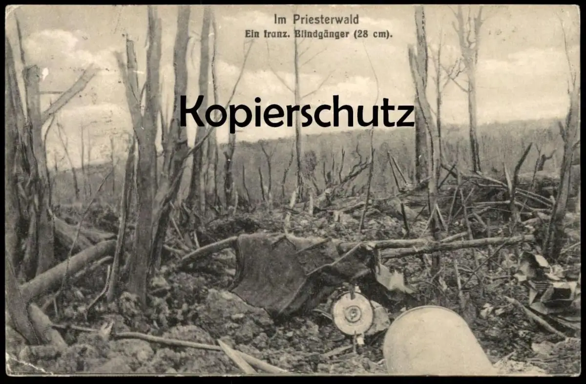 ALTE POSTKARTE IM PRIESTERWALD EIN FRANZÖSISCHER BLINDGÄNGER 28 CM Bois le Pretre Munition Bombe Thüringisches Fuß-AR-18