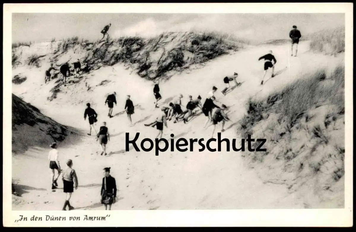 ALTE POSTKARTE IN DEN DÜNEN VON INSEL AMRUM Schüler Kinder enfant child enfants children Schulklasse Ansichtskarte