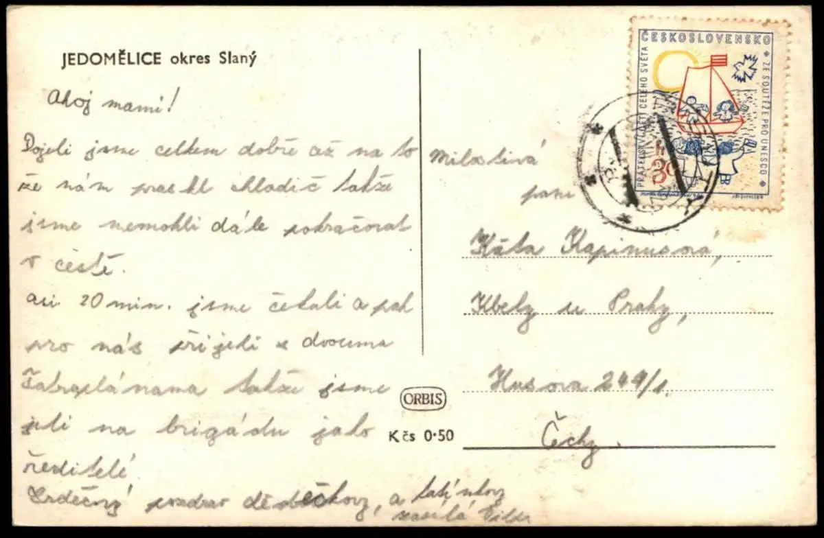 ALTE POSTKARTE JEDOMELICE OKRES SLANY