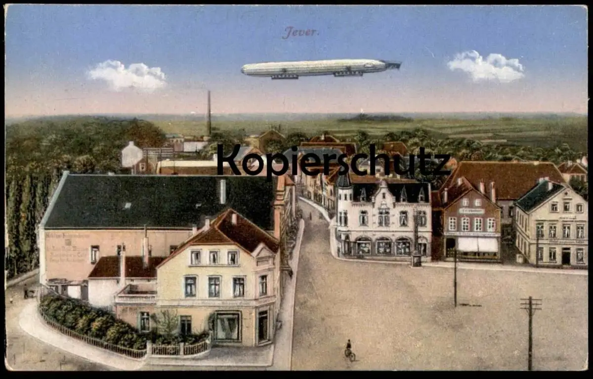 ALTE POSTKARTE JEVER PANORAMA MIT ZEPPELINVerlag: M. Glückstadt & Münden, Hamburg Photo Chrom