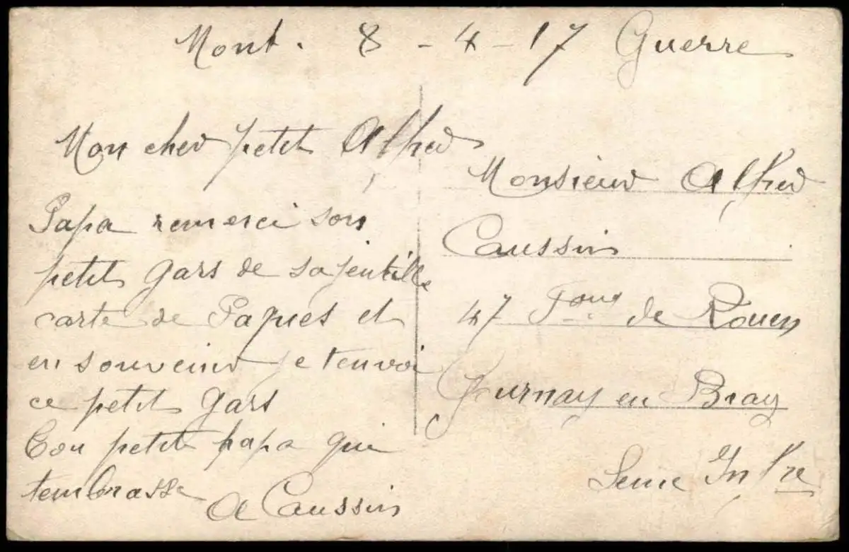 Gelaufen: nein, beschrieben 08.04.1917 nach Gournay-en-Bray