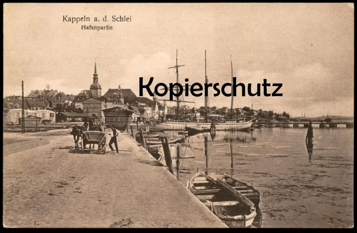 ALTE POSTKARTE KAPPELN AN DER SCHLEI HAFENPARTIE