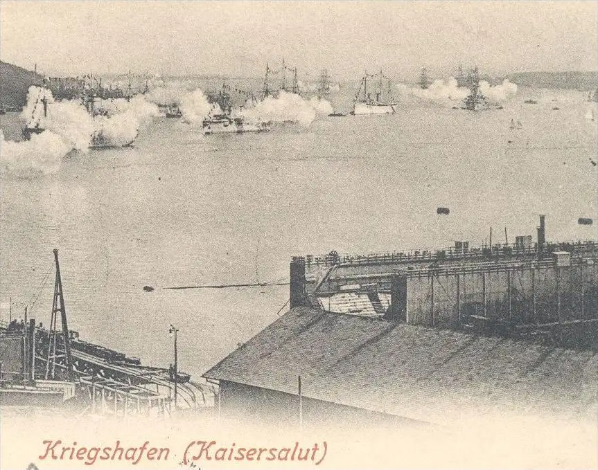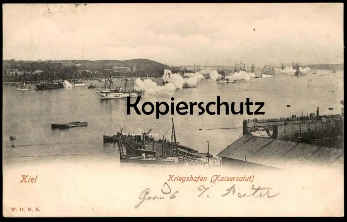 ALTE POSTKARTE KIEL KRIEGSHAFEN KAISERSALUTVerlag: W. D. N. K.