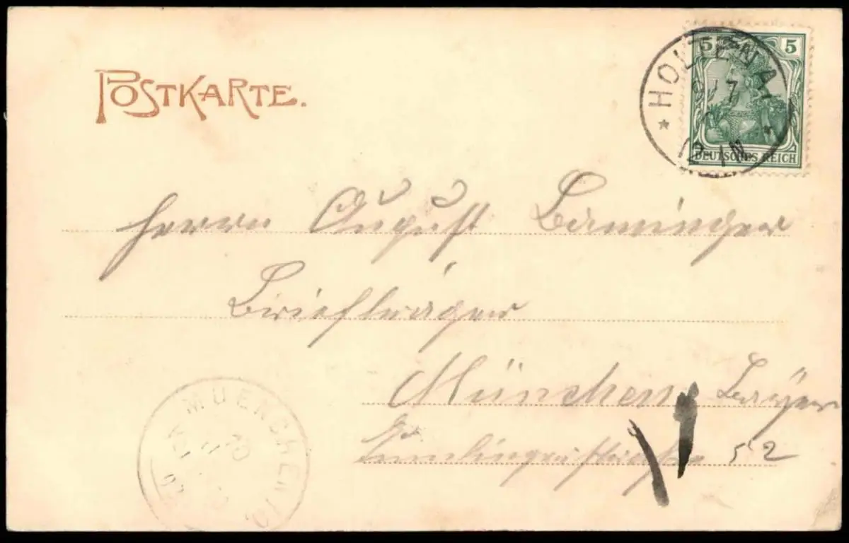 Gelaufen: 09.07.1903 mit Stempel Holtenau sowie Ankunftsstempel Muenchen 10 am 10.07.1903Erhaltung (s. Scan): gut - sehr gut, linke untere Ecke minimal bestoßen / 916983
