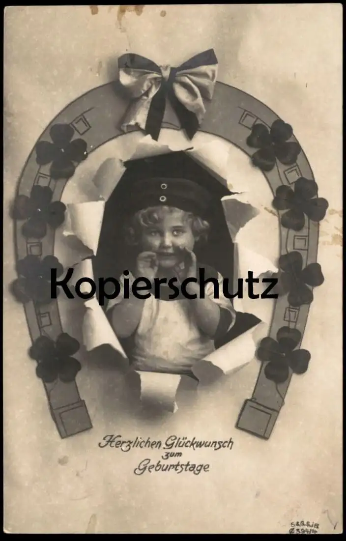 ALTE POSTKARTE KIND MÄDCHEN HERZLICHEN GLÜCKWUNSCH ZUM GEBURTSTAGE HUFEISEN MÜTZE child girl Ansichtskarte postcard cpa