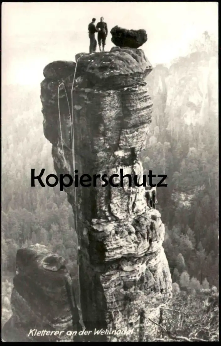ALTE POSTKARTE KLETTERER AN DER WEHLNADEL WEHLEN KLETTERN AUF DEM BERG FELS ELBSANDSTEINGEBIRGE climber Ansichtskarte AK