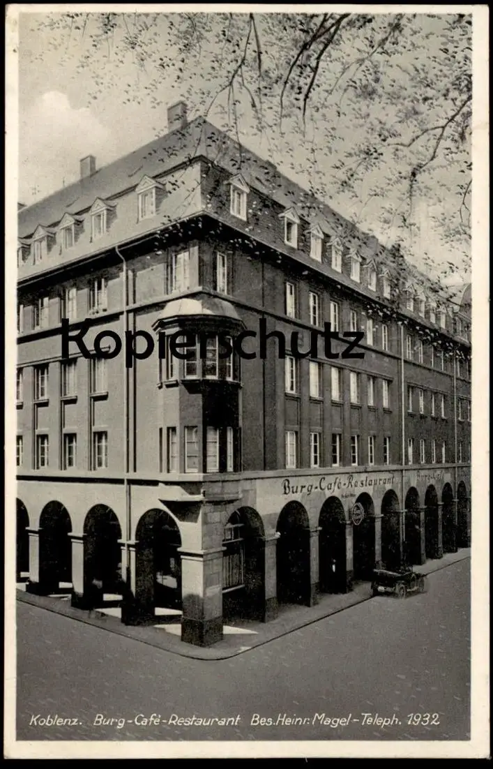 ALTE POSTKARTE KOBLENZ BURG-CAFÉ-RESTAURANT BESITZER HEINR. MAGEL TELEPHON 1932 Ansichtskarte cpa postcard AK