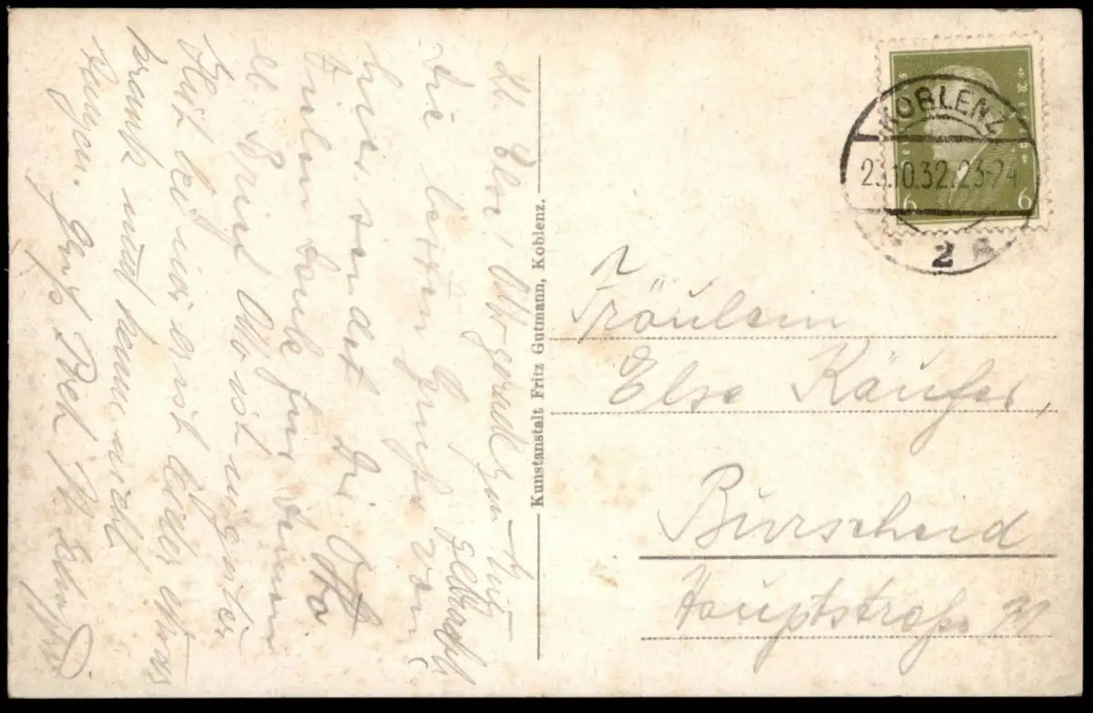 Gelaufen: 23.10.1932 mit Stempel Koblenz nach Burscheid
