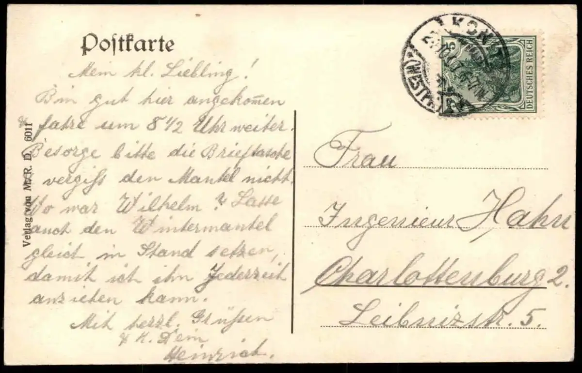Gelaufen: 21.10.1907 mit Stempel Konitz nach Charlottenburg