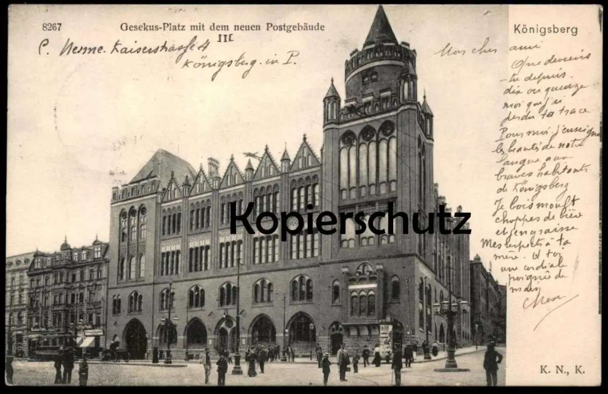 ALTE POSTKARTE KÖNIGSBERG KALININGRAD KROLEWIEC GESEKUS-PLATZ MIT DEM NEUEM POSTGEBÄUDE Koenigsberg Polska Polen Poland