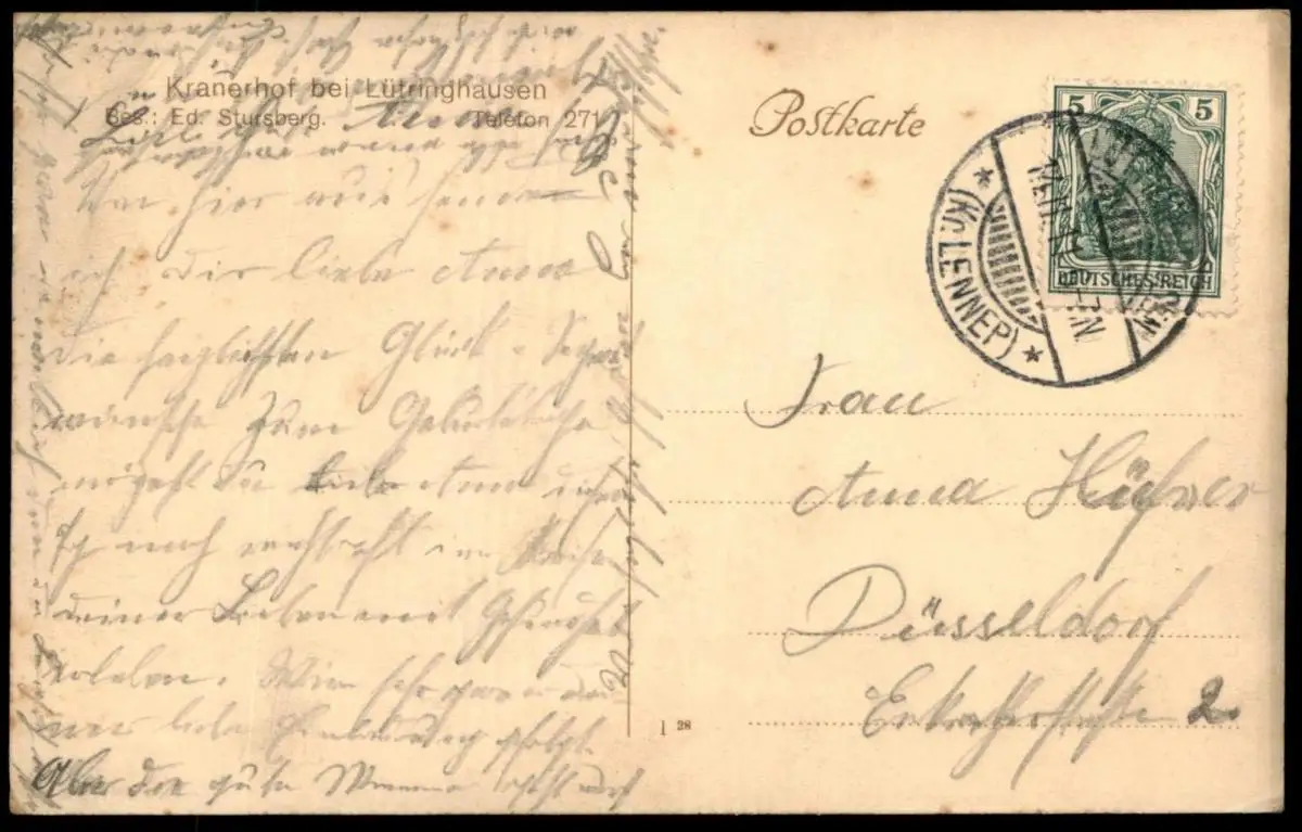 ALTE POSTKARTE KRANERHOF BEI LÜTRINGHAUSEN MIT KUTSCHE 1911 BESITZER STURSBERG REMSCHEID Lüttringhausen Ansichtskarte AK