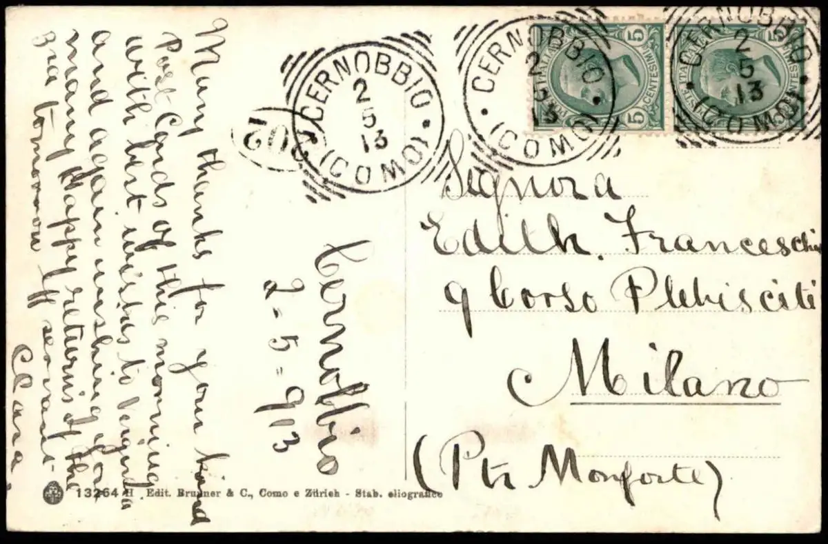 Gelaufen: 02.05.1913 mit Stempel Cernobbio (Como) nach Mailand