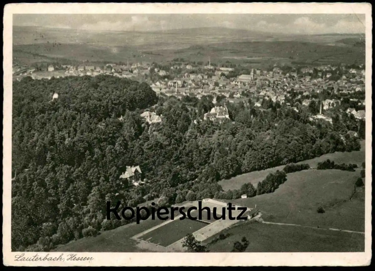 ALTE POSTKARTE LAUTERBACH HESSEN 1946 FLIEGERAUFNAHME LUFTBILD PANORAMA SCHWIMMBAD FREIBAD AN BUNKER BONN cpa postcard