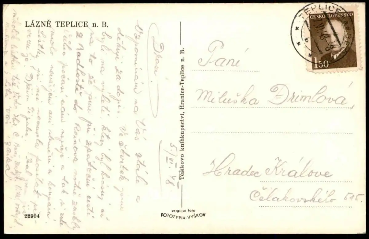 Gelaufen: 07.08.1948 mit Stempel Teplice nach Hradec Kralove
