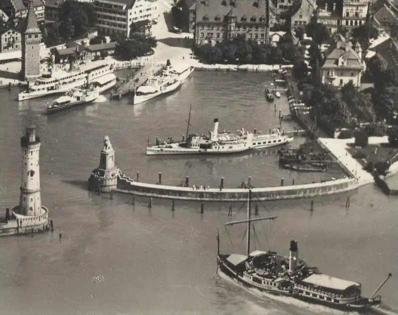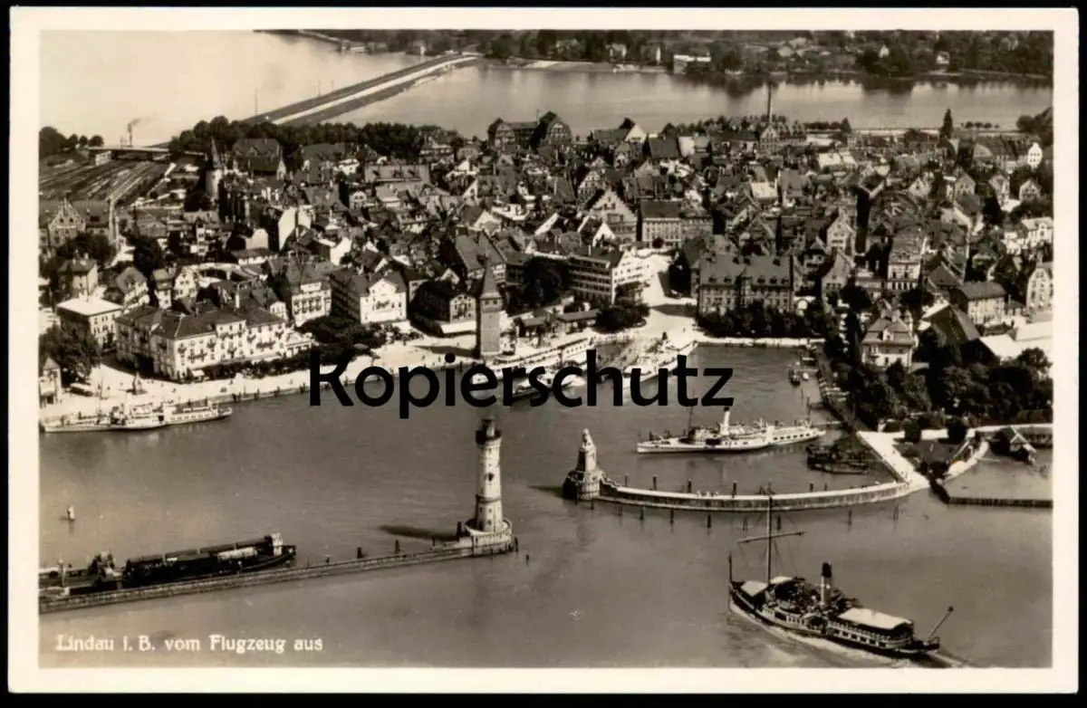 ALTE POSTKARTE LINDAU VOM FLUGZEUG AUS FLIEGERAUFNAHME 1930ER JAHRE Schiff Schiffe Dampfer Leuchtturm steamship phare AK