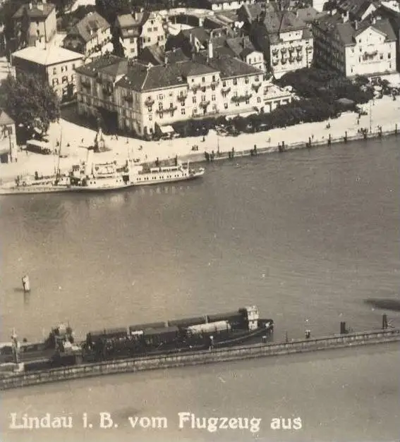 ALTE POSTKARTE LINDAU VOM FLUGZEUG AUS