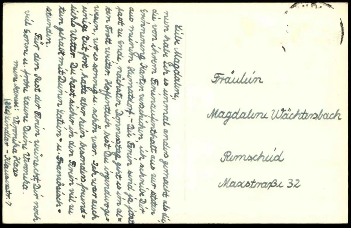 Gelaufen: xx.xx.19xx nach Remscheid, Briefmarke (sauber) entfernt