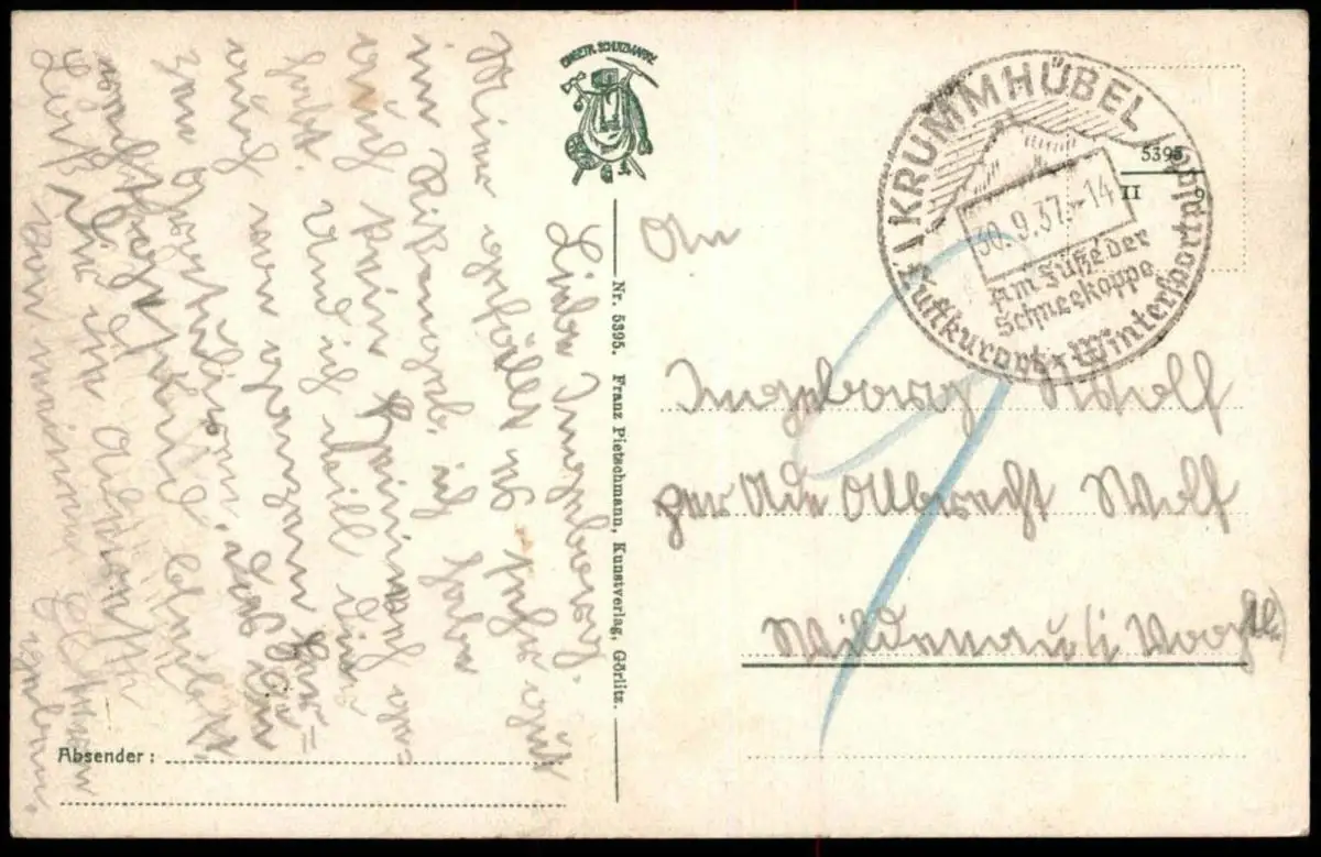 Gelaufen: 30.09.1937 unfrankiert mit Stempel Krummhübel nach WildenauErhaltung (s. Scan): gut - sehr gut / 916147