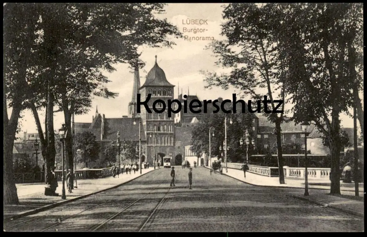 ALTE POSTKARTE LÜBECK BURGTOR-PANORAMA Strassenbahn tram tramway tour tower Luebeck Ansichtskarte AK postcard cpa