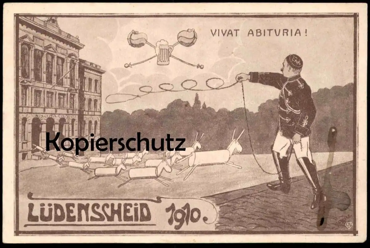ALTE POSTKARTE LÜDENSCHEID VIVAT ABITURIA 1910 ABITUR LASSO BIER STUDENTIKA STUDENTICA ZIRKUS CIRCUS CIRQUE cpa postcard