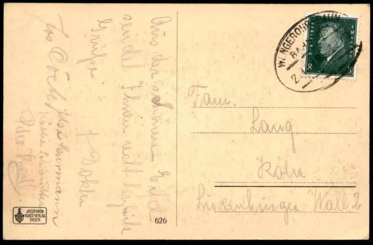 Verlag: Jacob Kron, Kunst-Verlag, TrierGelaufen: 18.03.1928 mit Stempel Bahnpost Zug 18 Wengerohr - Daun nach Köln Erhaltung (s. Scan): gut / 917790