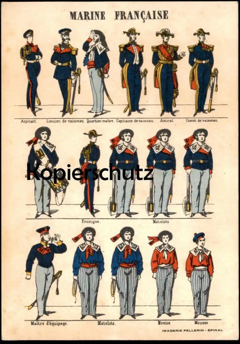 ALTE POSTKARTE MARINE FRANCAISE ASPIRANT MATELOTS NOVICE MOUSSE AMIRAL LIEUTEN DE VAISSEAU CAPITAINE DE VAISSEAU QUARTIER MAITRE COMM DE VAISSEAU ENSEIGNE MAITRE D´EQUIPAGE MILITAIRE UNIFORMEVerlag: Imagerie Pellerin, ÉpinalGelaufen: nein Erhaltung (s. Scan): gut - sehr gut / 915269