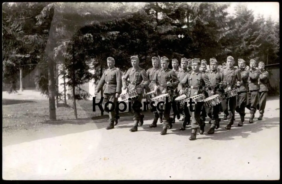 ALTE FOTO POSTKARTE MARSCHIERENDE SOLDATEN Soldat Trommel Trommler Querflöte