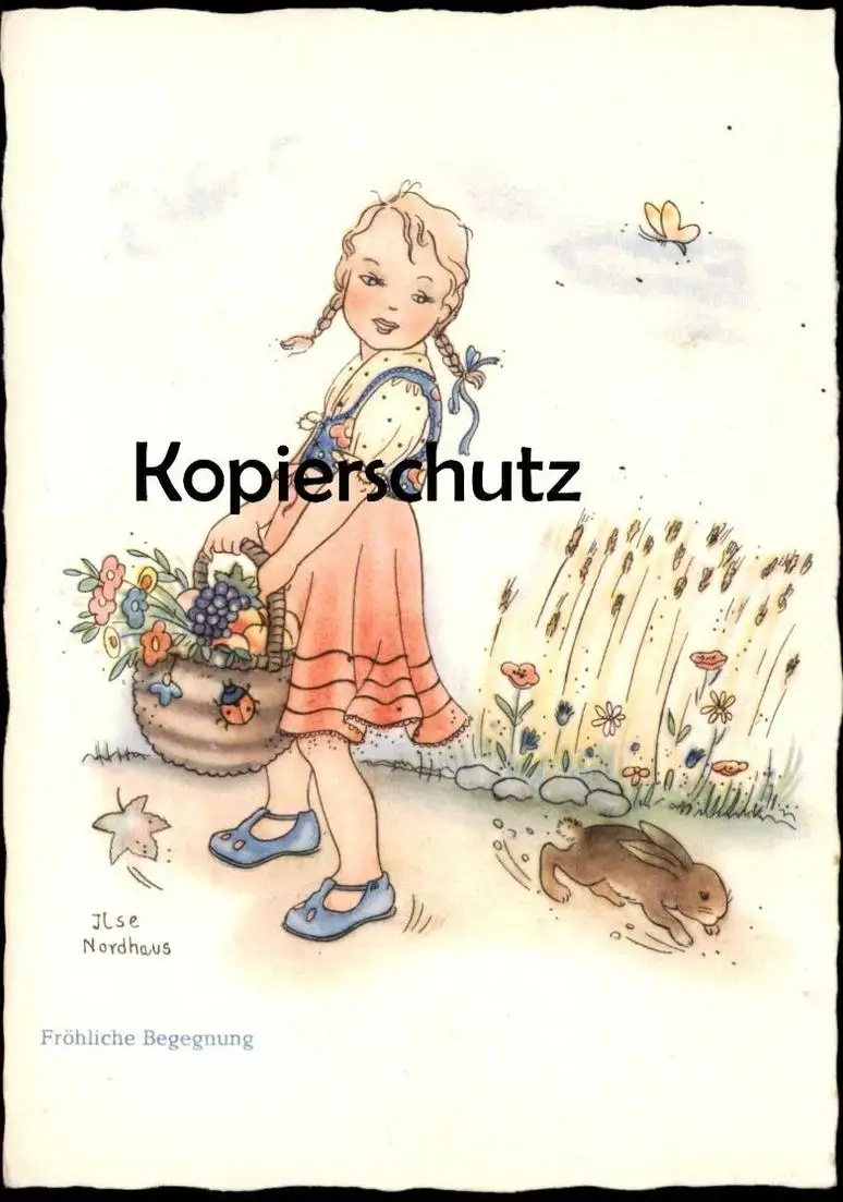 ALTE POSTKARTE MÄDCHEN FRÖHLICHE BEGEGNUNG OSTERHASE HASE KANINCHEN KIND SIGN. ILSE NORDHAUS enfant child postcard