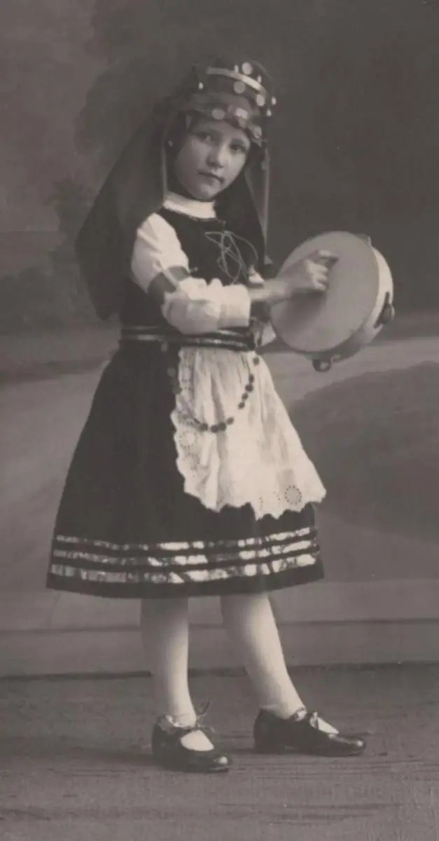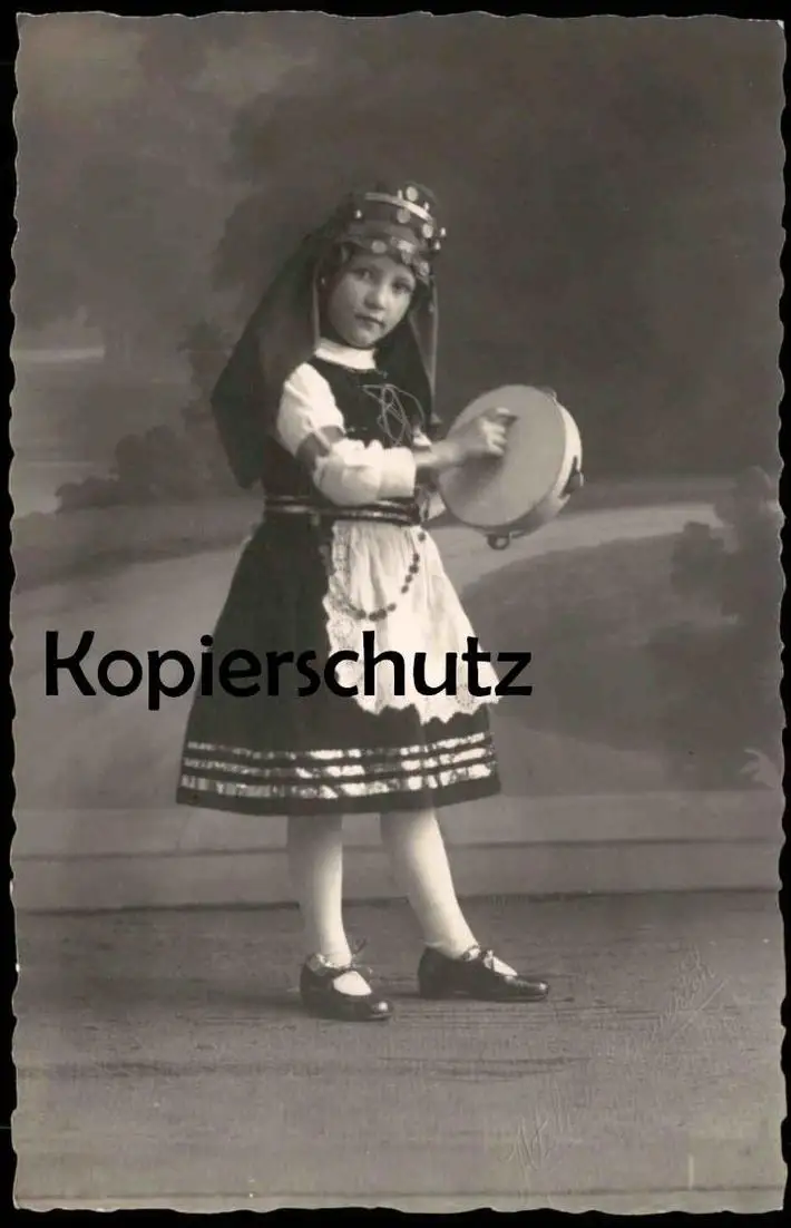 ALTE POSTKARTE MÄDCHEN MIT TAMBURIN ATELIER GIEGERICH NIEDER-INGELHEIM Kind gypsi tambourine traditional costume photo