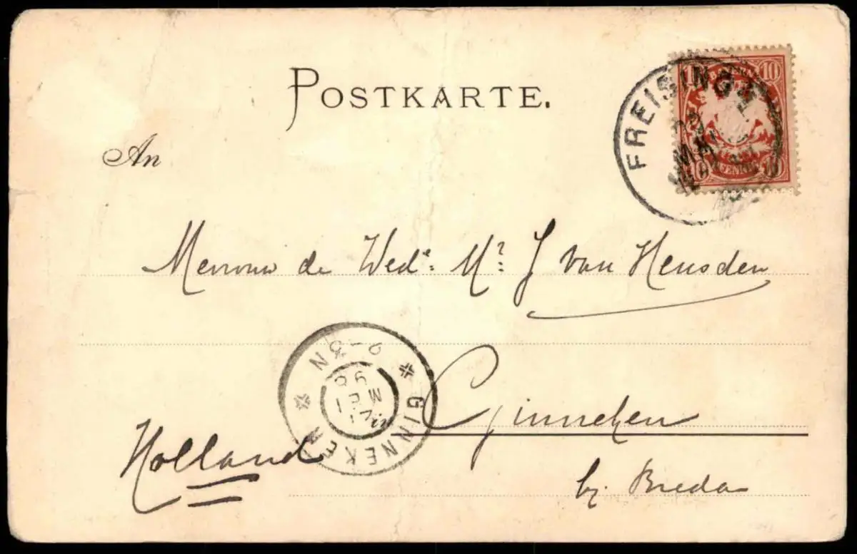 Gelaufen: 19.05.1898 mit Stempel Freising nach HollandErhaltung (s. Scan): mittel - schlechter, rechtsseitig bestoßen sowie mittiger Knick / 916306