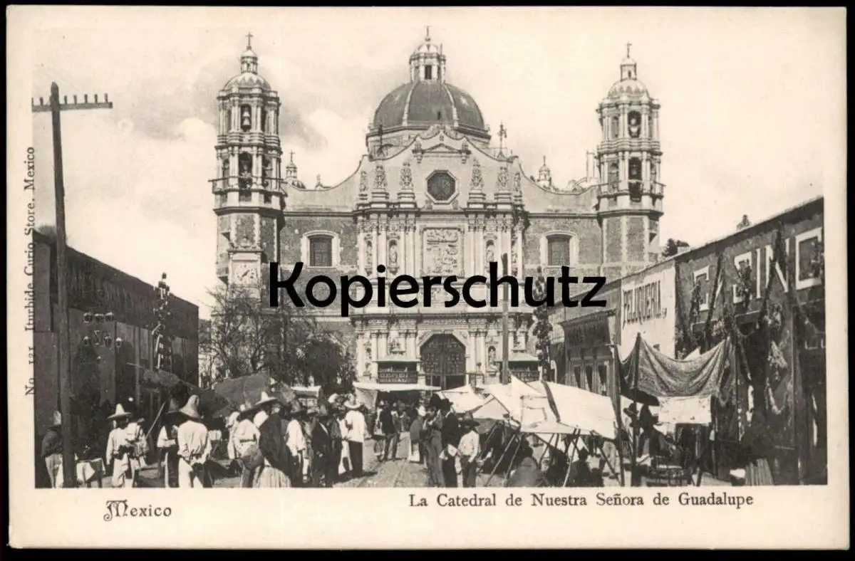 ALTE POSTKARTE MEXICO LA CATEDRAL DE NUESTRA SENORA DE GUADALUPE Markt market marché Peliqueria Mexiko church église cpa