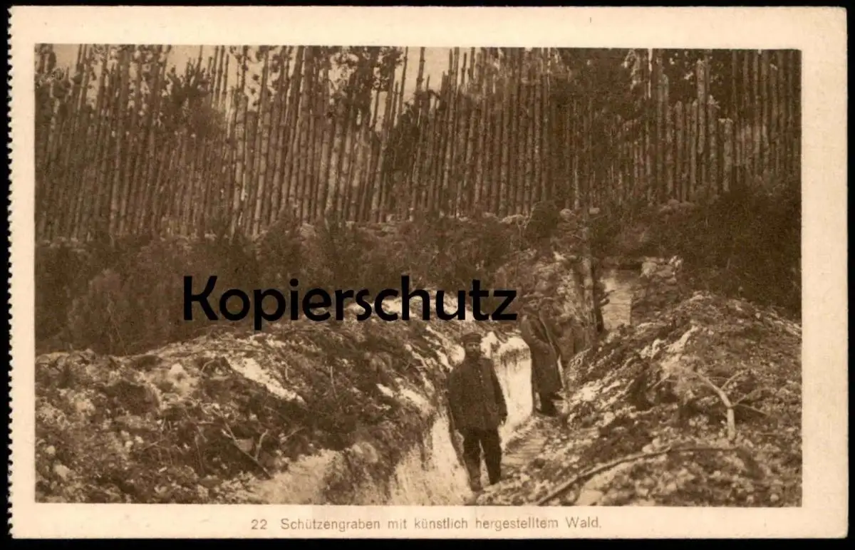 ALTE POSTKARTE MILITÄR 1. WELTKRIEG SCHÜTZENGRABEN MIT KÜNSTLICH HERGESTELLTEM WALD SOLDAT Ansichtskarte postcard cpa AK