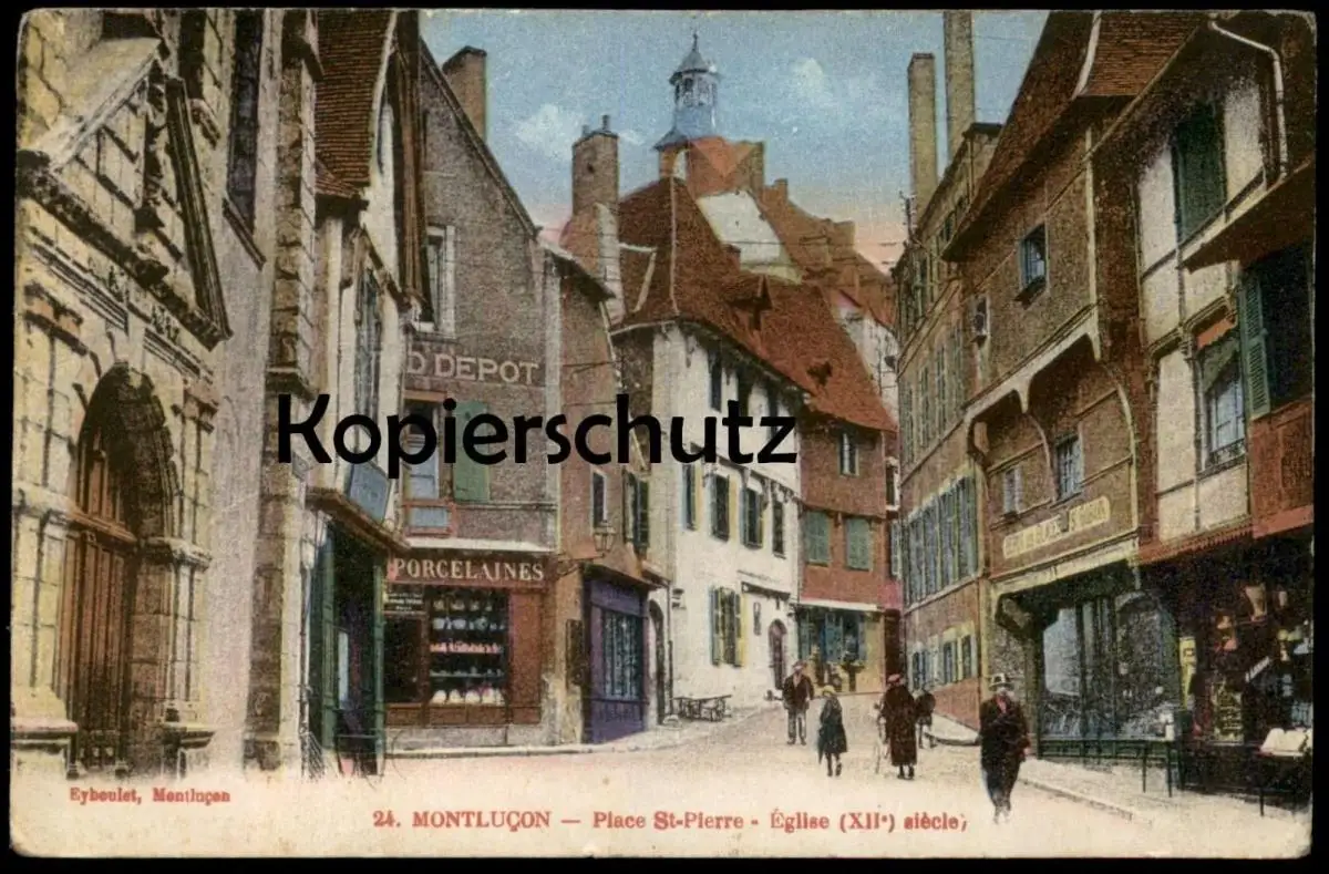 ALTE POSTKARTE MONTLUCON PLACE ST PIERRE ÉGLISE XII SIECLE PORCELAINES DEPOT GLACES S. GOBAIN Ansichtskarte cpa postcard