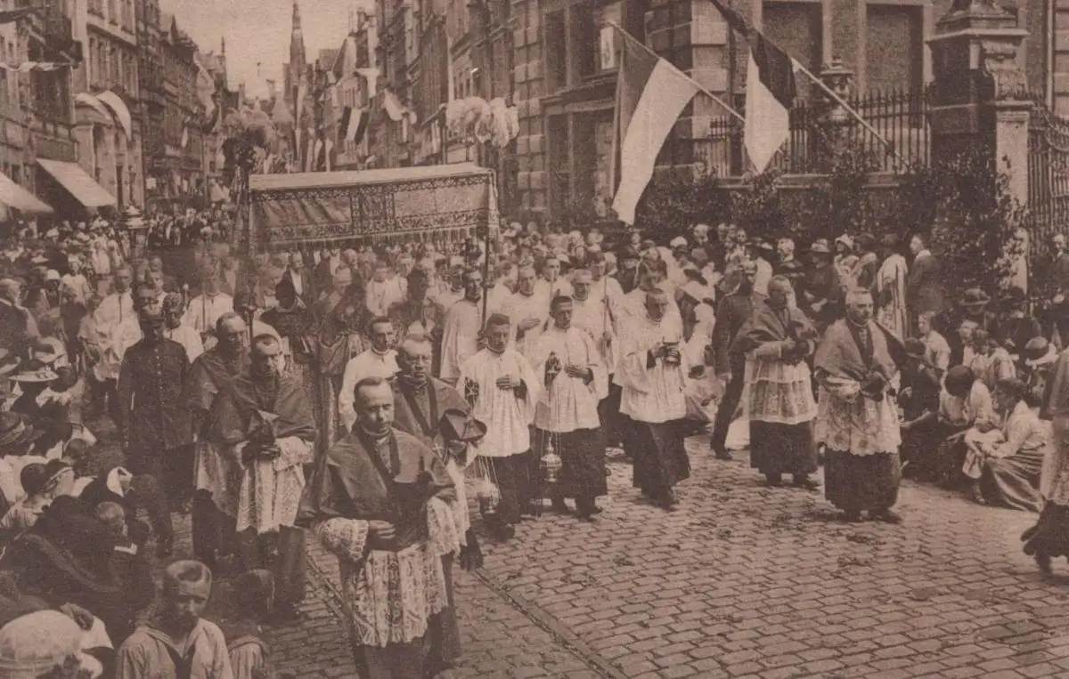 ALTE POSTKARTE MÜNSTER DEUTSCHER KATHOLIKENTAG 1930 PATER BISCHOF HEILIGE GEISTLICHE PROZESSION EREIGNIS cpa postcard