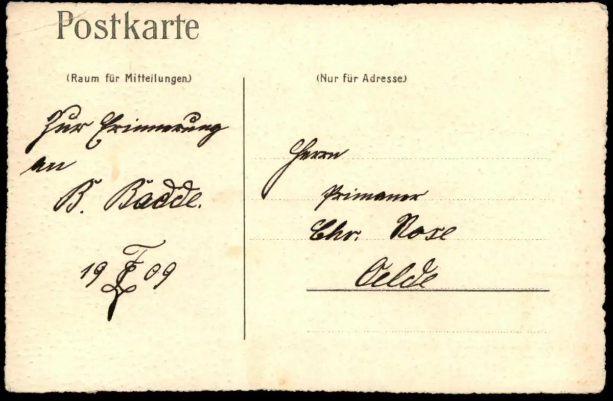 Gelaufen: nein, beschrieben Zur Erinnerung 1909Erhaltung (s. Scan): gut, Ecke rechts oben leicht bestoßen / 916104