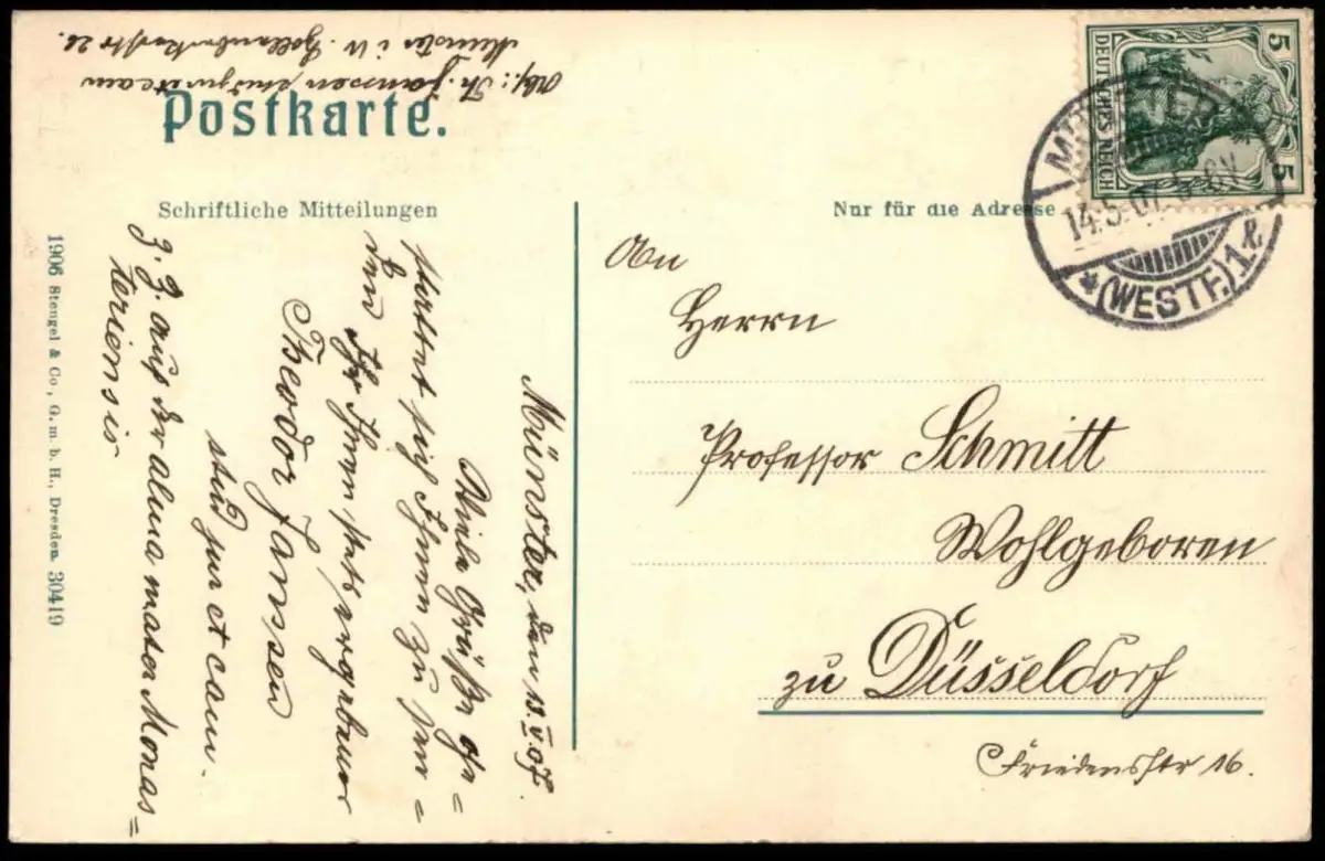Gelaufen: 14.05.1907 mit Stempel Münster nach Düsseldorf