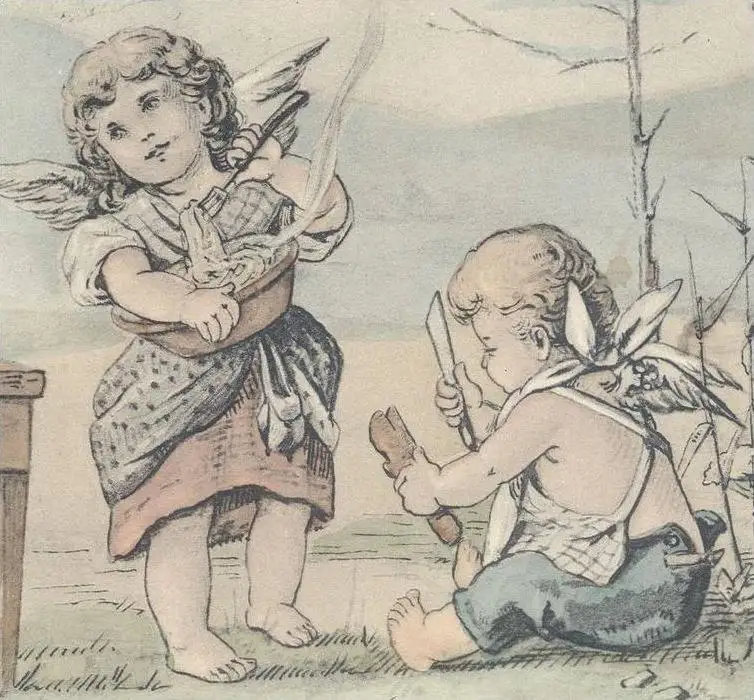 ALTE POSTKARTE MÜNSTER WESTFALEN PRINZIPALMARKT ENGEL SCHUTZENGEL SCHNITZEN KOCHEN SPIELEN