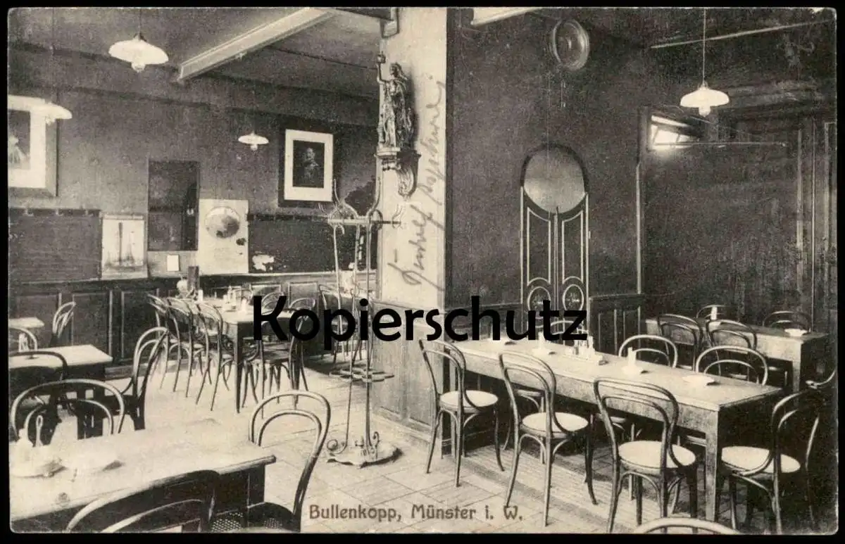 ALTE POSTKARTE MÜNSTER WESTFALEN RESTAURATION KNEIPE BULLENKOPP INNENANSICHT Bullenkopf Ansichtskarte AK postcard cpa