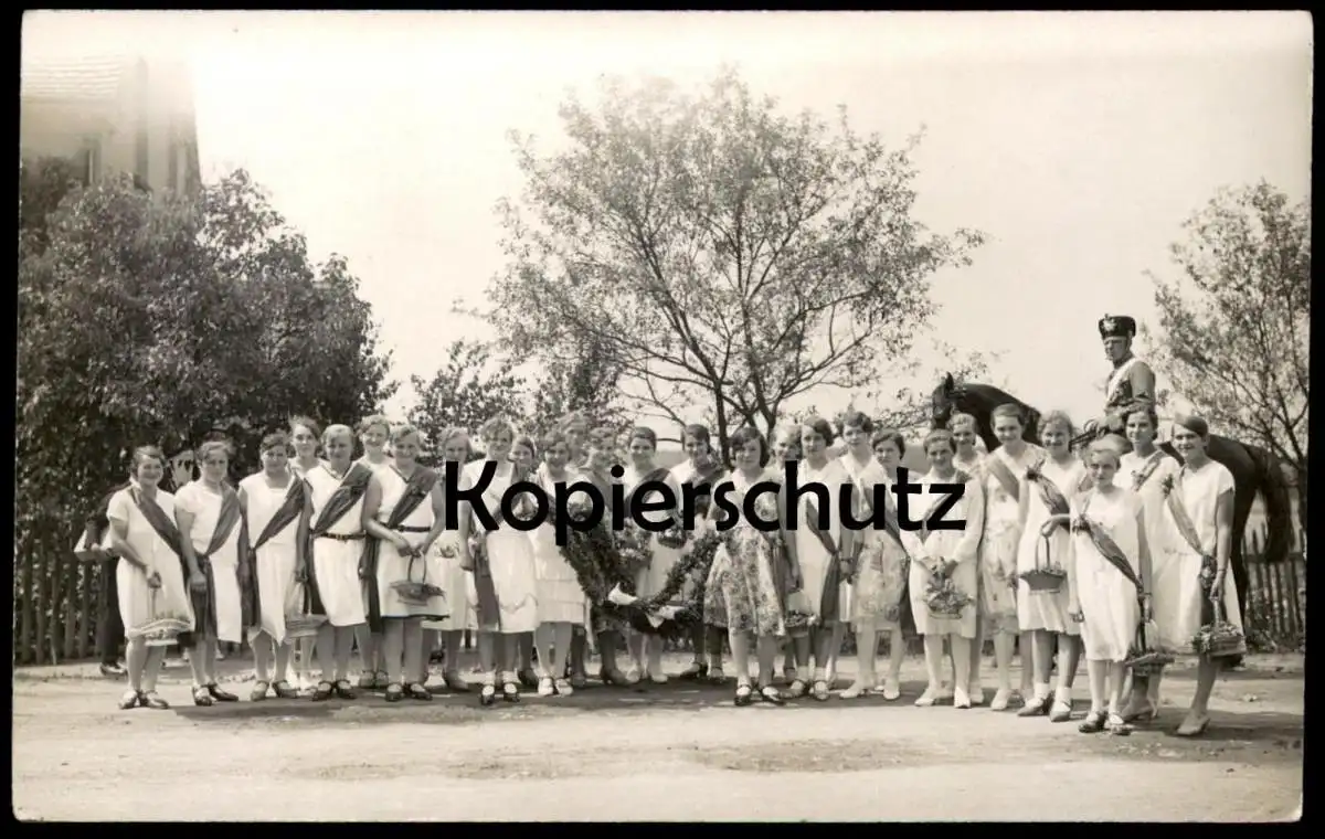 ALTE POSTKARTE NAUNHOF BEI LEIPZIG MÄDCHEN DAMEN SCHÄRPE SCHÜTZENFEST EHRENWACHE PFERD HUSAREN-VEREIN ? FEST photo