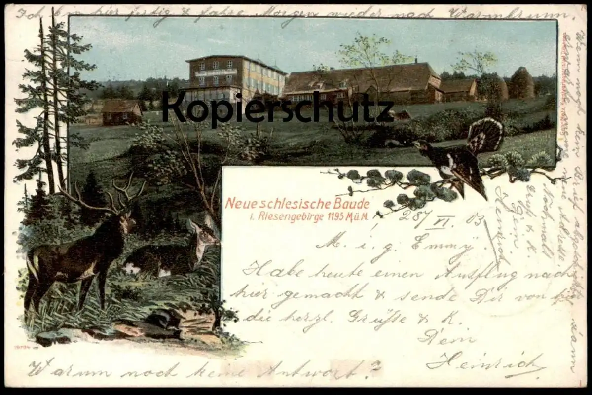 ALTE POSTKARTE NEUE SCHLESISCHE BAUDE HIRSCH REH AUERHAHN STEMPEL GUSTAV ALDOPH RIESENGEBIRGE Schlesien postcard cpa AK