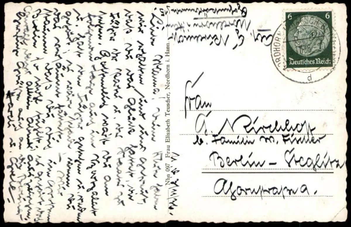 Gelaufen: 03.11.1936 mit Stempel Nordhorn Grafschaft Bentheim nach Berlin Steglitz