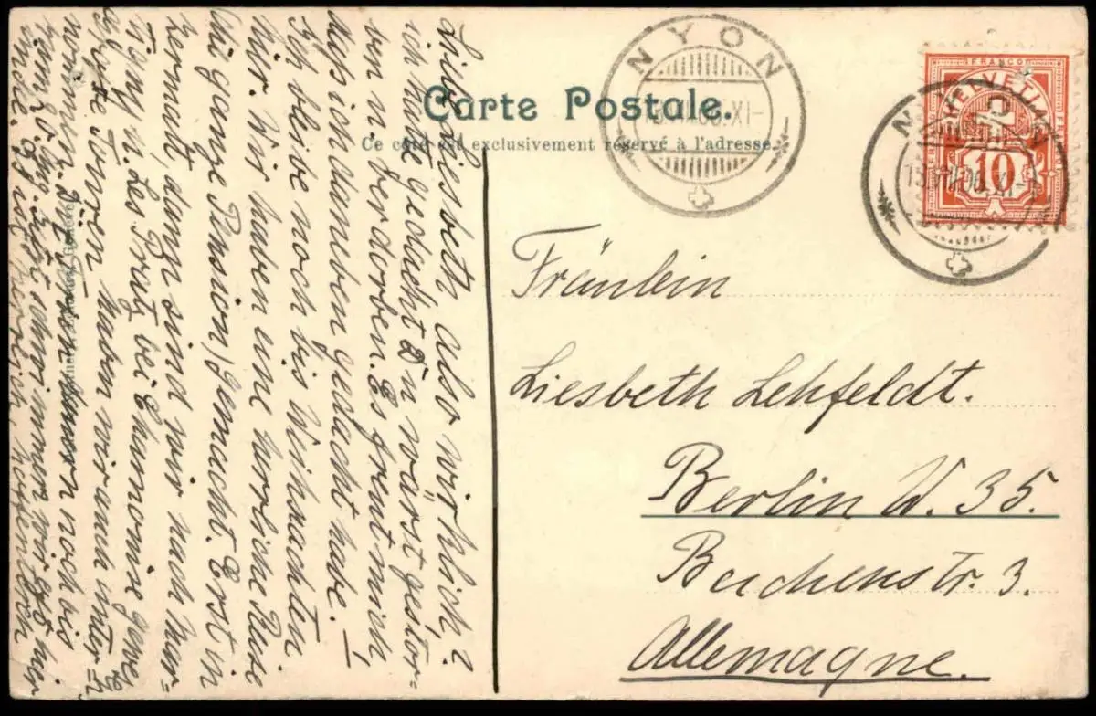 Gelaufen: 13.07.1906 mit Stempel Nyon nach Berlin