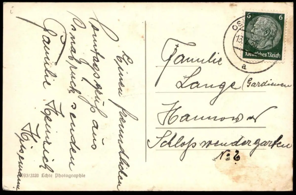 Gelaufen: 13.07.1936 mit Stempel Osnabrück nach Hannover