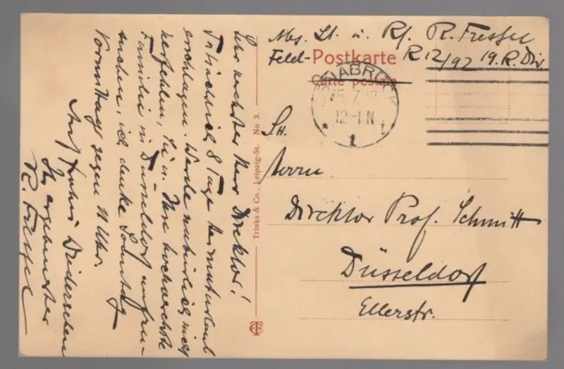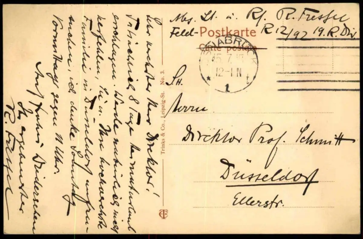 Gelaufen: 15.07.1915 als Feldpost mit Stempel Osnabrück nach DüsseldorfErhaltung (s. Scan): gut / 915830