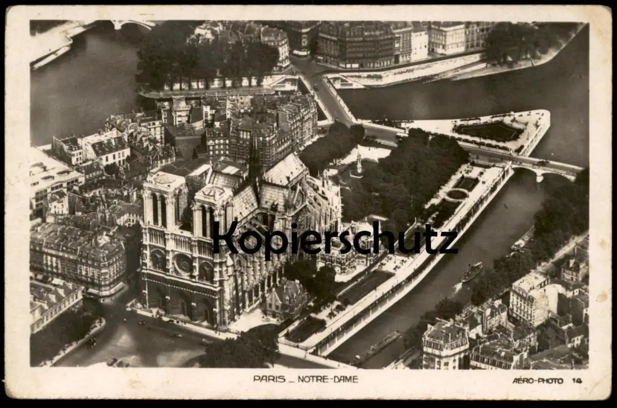 ALTE POSTKARTE PARIS NOTRE-DAME AERO PHOTO FLIEGERAUFNAHME LUFTBILD SEINE cpa postcard AK Ansichtskarte