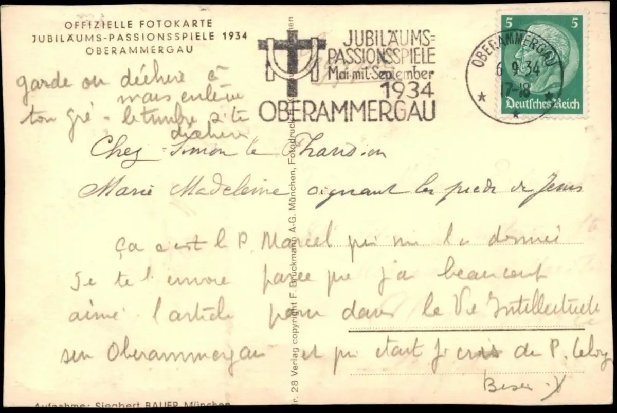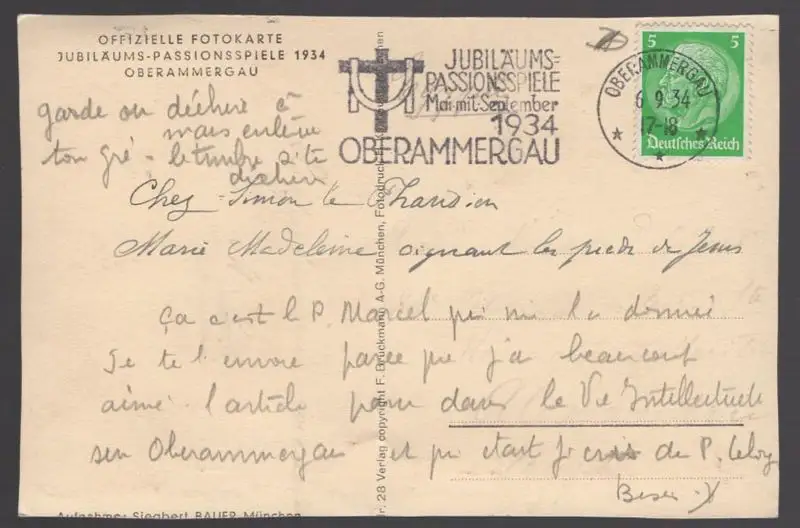 Gelaufen: Gestempelt 06.09.1934 mit Sonderstempel Passionsspiele Oberammergau