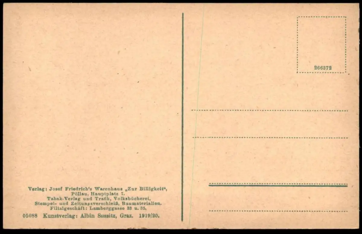Verlag: Josef Friedrich´s Warenhaus "Zur Billigkeit", Pöllau; Kunstverlag Albin Sussitz, Graz